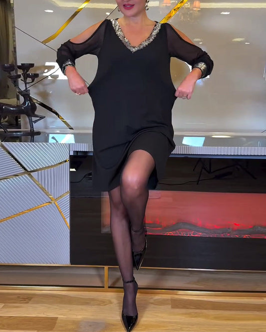 Aline | Robe Élégante à Col V et Détails Scintillants